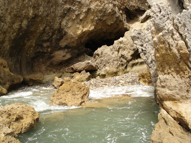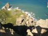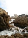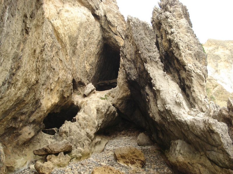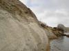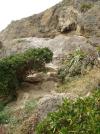 Der "Wanderweg" bestand im wesentlichen daraus, über Steine und Geröll am Rande des Leuchtturmfelsens zu klettern - links Meer, rechts Steilwand. Spannend. Kurz vor dem (von mir vermuteten) Höhleneingang wollte ich dann schon aufgeben, da ich vor einer nichtüberspringbaren Kluff stand, die zwar nicht tief, aber mit stark strömendem Meereswasser gefüllt war. Glücklicherweise fand ich dann aber noch einen zweiten und trockenen Zugang. Siehe Pics: Das im Text zeigt den richtigen 'Weg' zur Hoehle ...