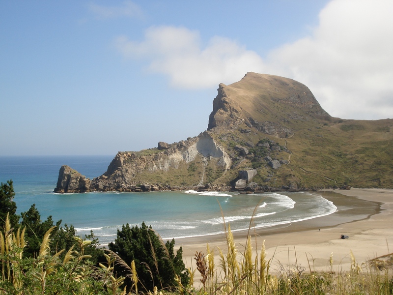 Heute gab es neben der anstrengenden Fahrt von fast 300 km auch noch ein riesen Highlight für mich - hätte ja nicht gedacht, dass mich nach der LotR-Tour gestern noch irgendwas von den Socken hauen könnte: Bin nach der Erkundung der Puntangirua Pinnacles früh morgens aufgebrochen, um zu dem Örtchen Castlepoint, das direkt am Meer liegt, zu gelangen. Besonderheiten: Großer Fels im Wasser, der wie eine Festung wirkt (daher auch der Name des Ortes); ein hübscher Leuchtturm, der auf einem weiteren - aber von der Brandung unterhöhlten - Felsen liegt; ein paar schöne Tracks, um die Gegend zu erkunden und die Möglichkeit, im Meer zu baden. Klang nach der perfekte Kombination für einen schönen letzten Urlaubstag - und das sollte es auch werden.