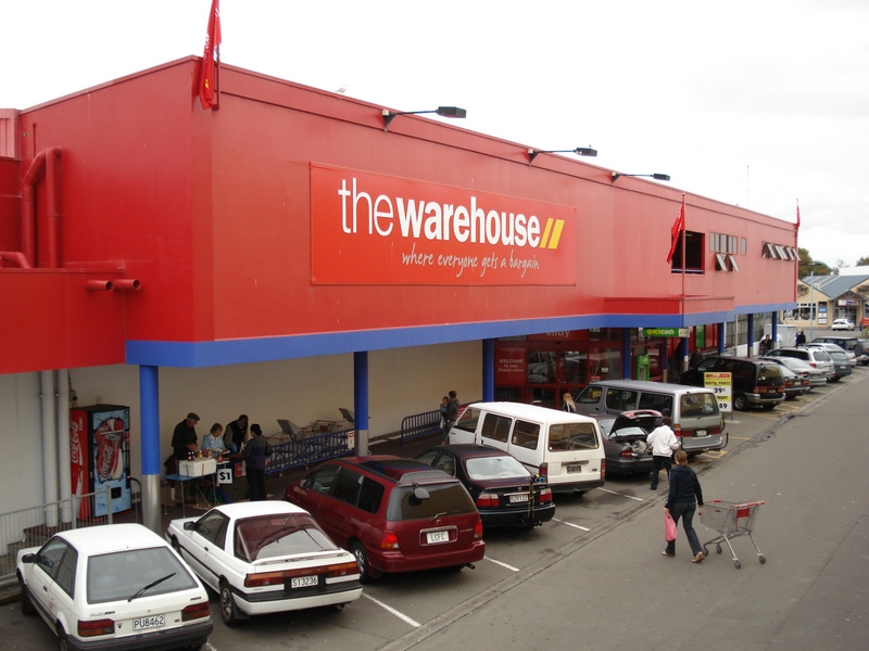 Ganz wichtig: Das Warehouse. Dort gibts fast jeden Scheiss, was auch auch ein paar brauchbare Sachen miteinschliesst - eigentlich alles, was man nicht essen kann, aber auch nen paar essbare Dinge: Klamotten, Autozubehoer, Corn flakes, Tupperdosen, Muelleimer, Kosmetika, CDs, Buecher, Schuhe - ja, einfach alles. Das ist uebrigens auch der legendaere "Supermarkt", in dem Papa und Kati ihren halben Neuseelandurlaub verbracht haben - unter anderem auf der Suche nach einer passenden neuen Badehose fuer'n Daddy.