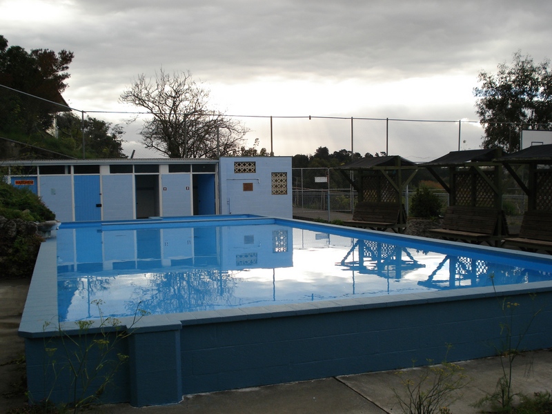 Ach ja, und zum Abschluss meines Abschlusses gibts noch Aufnahmen von dem (mittlerweile extrem kalten und ungemuetlichen, unbeheiztem) Swimmingpool, dem (mittlerweile ziemlich von Unkraut ueberwucherten, aber trotzdem Koriander, Schnittlauch, Salat etc. bietenden) Kraeutergarten, eines (ziemlich farbenfrohen und ganz in der naehe gelegenen) Baumes und ein paar schwarzen Schafen. Prost.