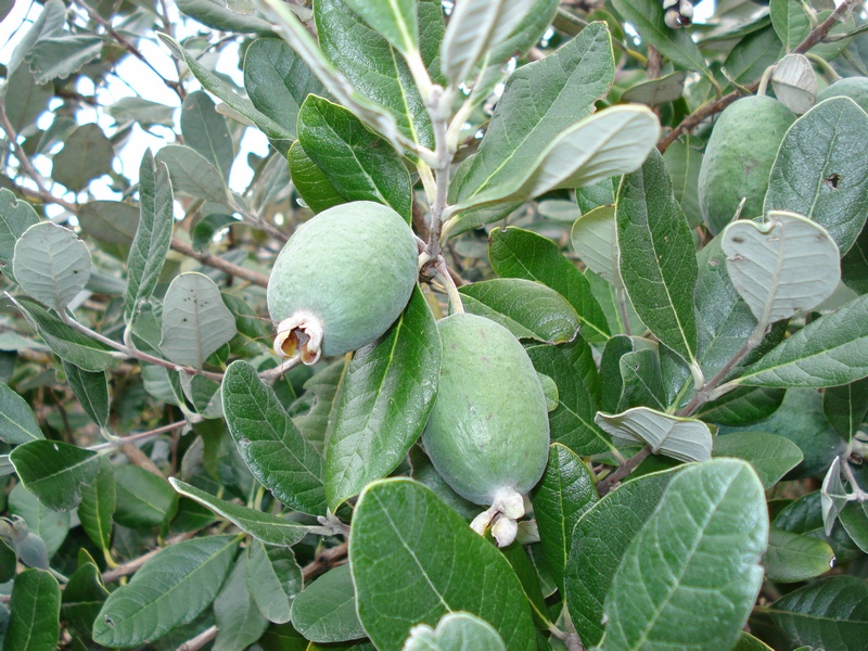 Feijoas oder auch Ananas-Guave genannt. Schmeck wie ne Mischung aus Erdbeeren und Ananas - sagt jedenfalls Wikipedia. Muss noch ein wenig warten, bis die reifer sind. Regan, der Junge, den ich hier betreue, liebt das Zeug. Leider sind die Dinger einem festen Stuhlgang nicht gerade zutraeglich ...