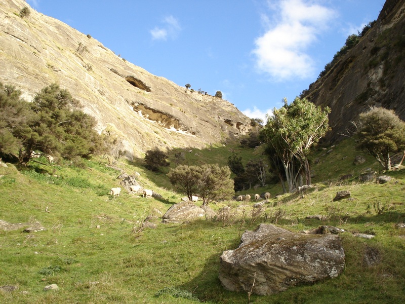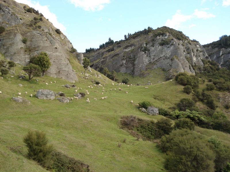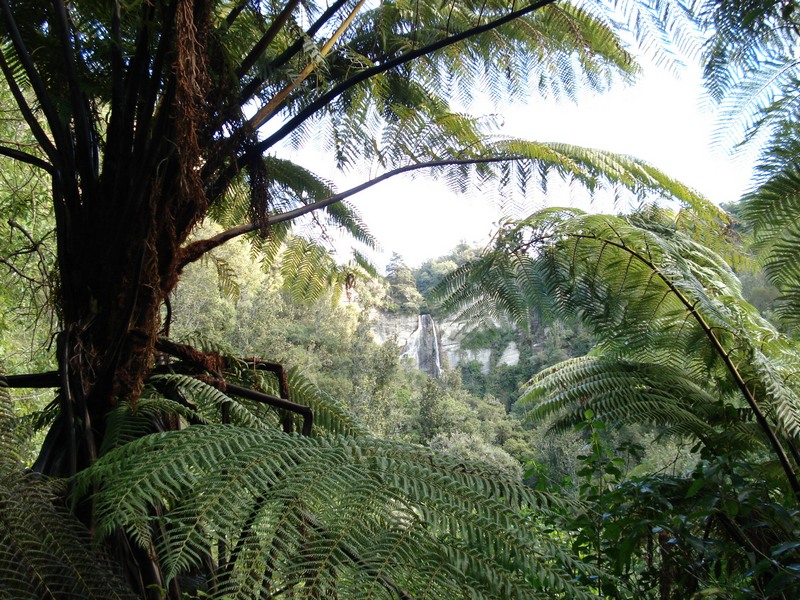 Die angeblich zweistuendige Wanderung (hat 1.5 Stunden gedauert - wobei ich staendig gestoppt habe, um Bilder zu machen) fuehrte anfangs ueber Farmland (Schafe, diesmal in etwas frischerem Zustand), offenbarte dann aber immer mehr urspruenglichen Busch, bis sie dann vor dem groesstem Wasserfall der Hawke's Bay (58m) endete. Die Besonderheit ist aber weniger die Hoehe, sondern vielmehr der spezielle Weg, den das Wasser nimmt. Leider sind meine Bilder nicht so der Hammer, da alles schon im Schatten lag.