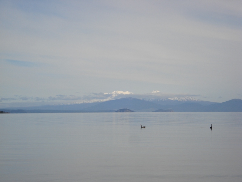 Es ging schon damit los, dass ich keine vernuenftige Winterbekleidung hatte - dachte mir aber, dass es ein paar Schichten T-Shirts, Sweatshirts, Hosen und Jacke + Regenjacke schon tun wuerden. Sachen gepackt und nach Taupo gefahren, was ca. 150 km enfernt liegt. Von dort aus ist es nicht weit ins Gebirge und ins Nordinselskigebiet schlecht hin - Mt. Ruahine, Mt. Ruapehu, etc. (LotR Mount Doom inklusive). Nach ner Nacht in der Rainbow Lodge in Taupo wollte ich dann naechsten Morgen eigentlich ich die Berge aufbrechen, um mich dem kalten Weiss zu widmen - Van springt net an. Aber es war doch garnicht wirklich kalt, nichtmal Frost gab es. Tja, Dreckkarre mag eben keine 'winterlichen' Temperaturen (siehe Definition von Winter weiter oben), Plan geandert: Lieber in Taupo bleiben, um mein Auto keiner wirklichen Kaelte auszusetzen, was die Kiste wohl total lahmlegen wuerde. Er ist btw dann spaeter auch wieder angesprungen - aber alles andere als freudig.