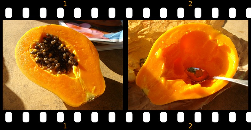ausserdem jeden Tag Kokosnuss gegessen - die ja praktischerweise ueberall herumlagen. Habe zum Glueck aber auch in Restaurants ausserhalb unserer Anlage gutes Essen bekommen. Unser inbegriffenes "Tropical Breakfast" war uebrigens der absolute Reinfall. Toast, Butter, Marmeladen, Marmite, ein paar Sorten Cornflakes und Obstsalat aus der Dose. Baeh.